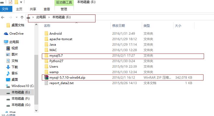win10系统 64bit mysql-5.7.10-winx64.zip