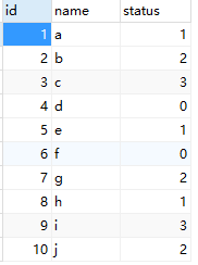 在平常的项目中,经常会碰到这样的问题:我需要在一张标中同时更新和查询出来的数据。例如:有如下图一张表数据,现在需要更新操作为:把status=1的name值更新为id=2的name值