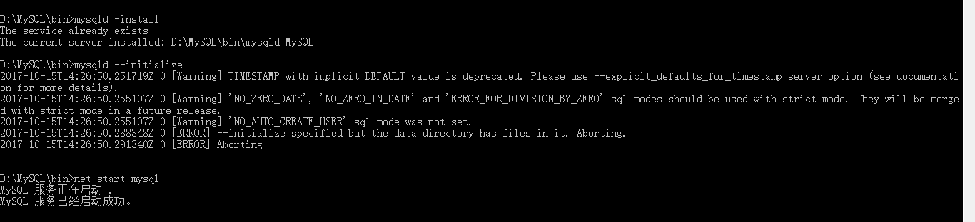 cd /dD:\MySQL\bin 进入bin目录。要进入bin目录!图上没写! 然后按图中命令敲下去。