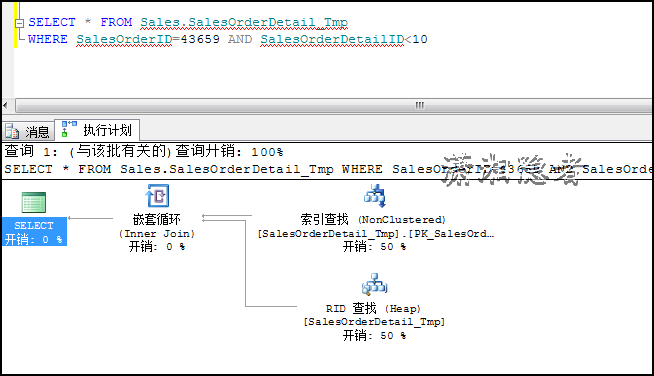 如上所示,当我们查询OBJECT_ID=1的数据时,优化器使用索引查找(Index Seek)