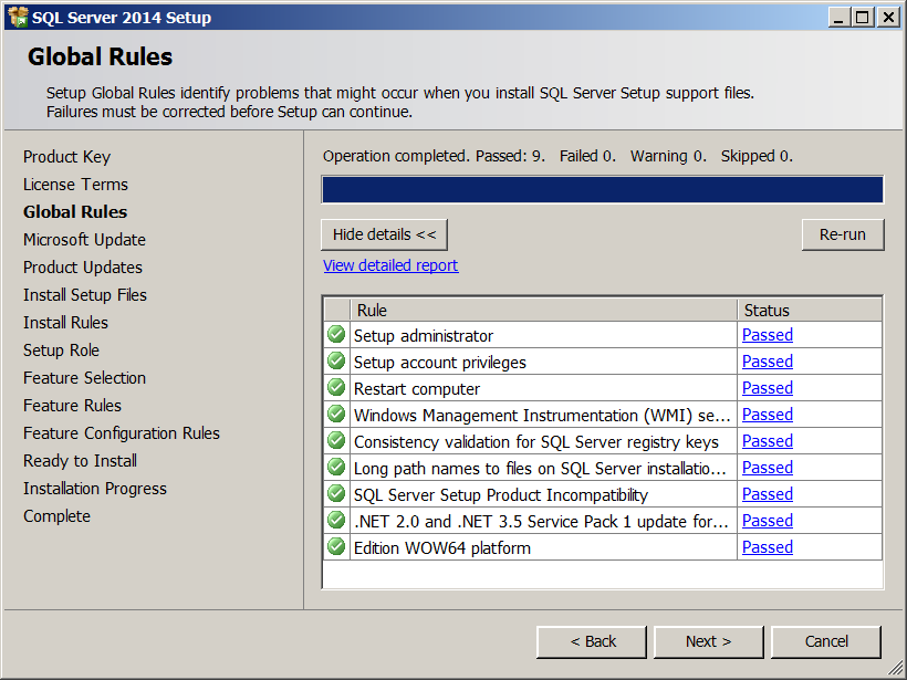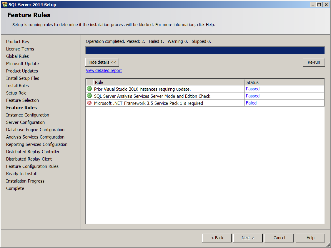 安装前检查,虽然在这一步成功了,但是后面却失败了,害的重新装了一遍 .NET FRAMEWORK 3.5 SP1。