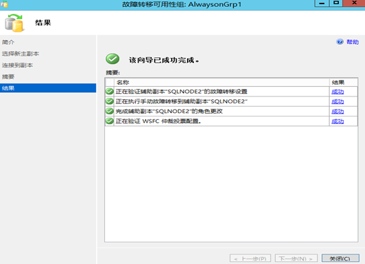当前读写节点为SQLNODE2,直接将SQLNODE2 sqlserver服务重启,可用组会自动漂移到SQLNODE1。截图略。