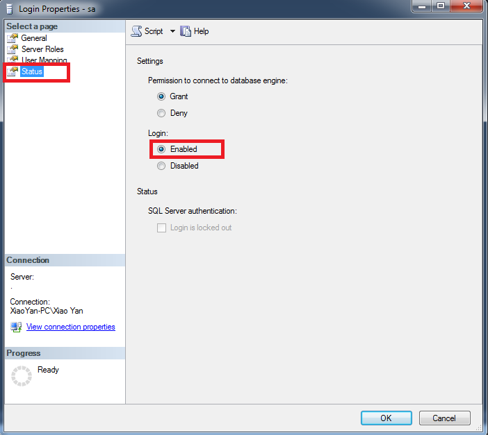 Authertication: WindowsAuthertication为管理员登录权限,一般选择SQL ServerAuthertication 登录