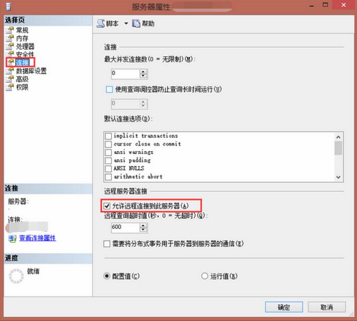 STEP 3. 再选择“连接”,勾选“允许远程连接此服务器”,然后点击“确定”按钮。