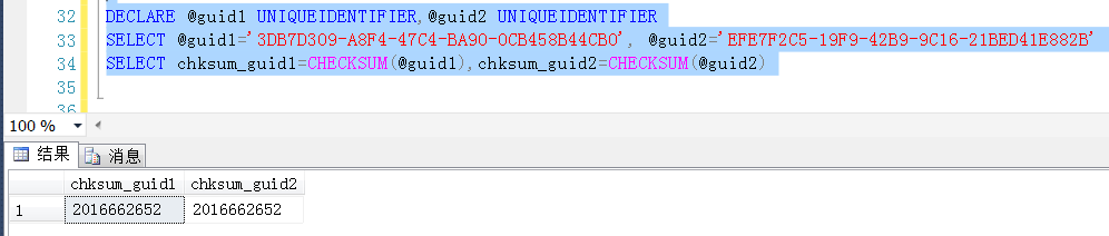 这里使用的是HASHBYTES加密函数,对字符串加密,然后对加密之后的数据生成一个UNIQUEIDENTIFIER,重复的概率就小的多的多了
