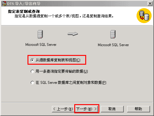 17、选择您想要导入的表、视图等数据内容,如下图所示: