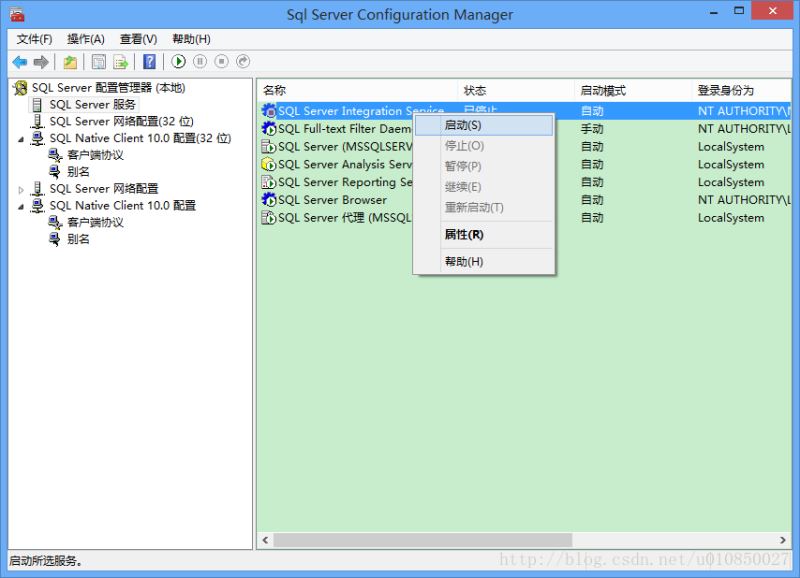 解决:第一步,程序–SQL Server2008–配置工具–SQL Server配置管理器,找到SQL Server网络配置中的MSSQLSERVER的协议:启用如下协议。