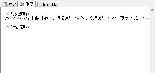 可以看到成功使用了在OrderDate上面建立的索引IX_OrderDate,逻辑读次数为14,返回行数6行