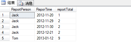 看到问题首先想到的是要group by ReportPerson,能将每个人的统计数据计算出来,但是还没达到要求,还需要获得每个人每天的统计数据,对于我这样的菜鸟来说就有点麻烦了,不知道该怎么下手了,在sql群里找了个高手,告诉需要把规定一下时间格式,然后把时间格式限定到天和月,这两个问题就解决了。