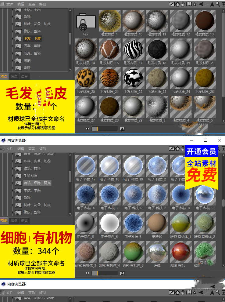 8000个C4D默认渲染器材质球,全中文标识,加强升级版,文件总大小:6GB